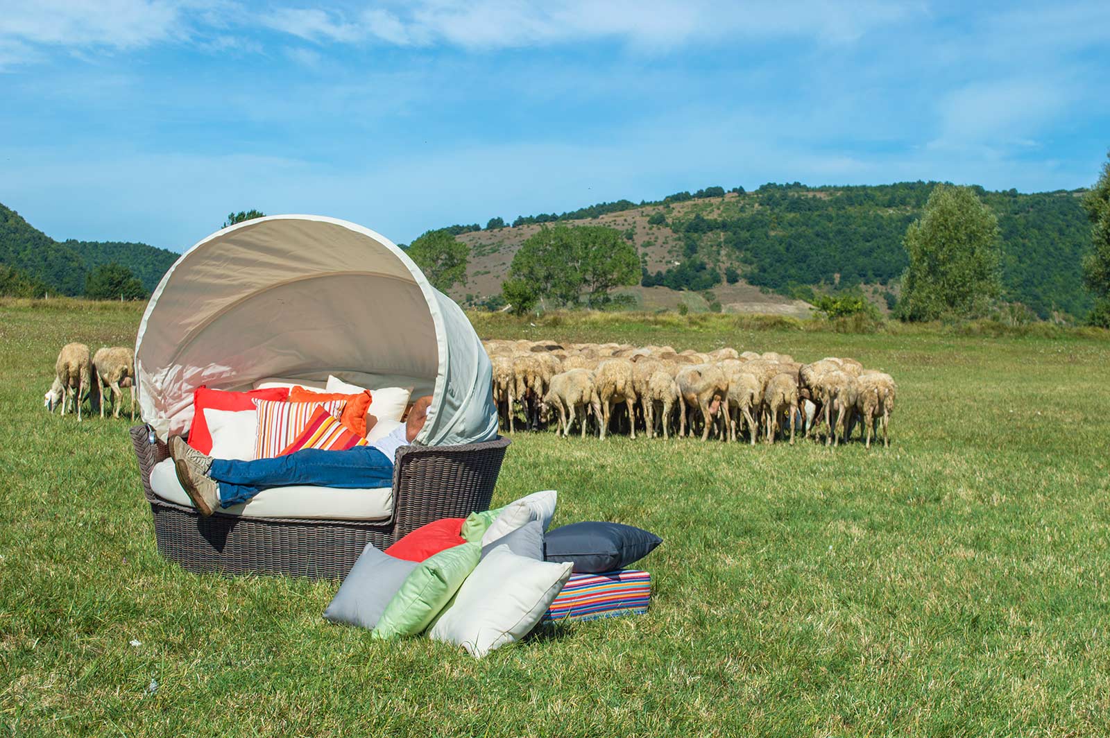 Couch oder Sonnenliege? Weder noch,von jedem etwas.Bestimmen Sie einfach und KORB wird zu dem,was Sie sich wünschen.Es wird die besondere Ecke sein,in die Sie sich und Ihre Gäste zurückziehen können.