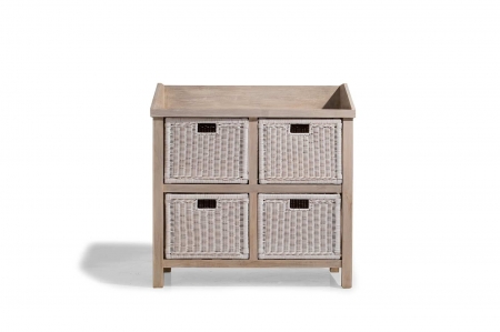 KOMMODEN SHOP 943 - kommode L0943 702,00 € Kommode mit Gestell aus Teakholz mit vier Schubladen aus Rattan.Farbe: weiss abgewischt In den Warenkorb