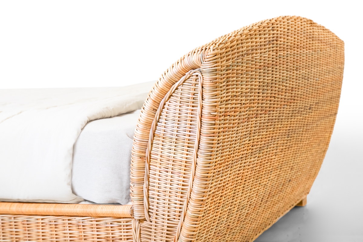 Alle Stücke der Retrò-Kollektion verfügen über einen massiven Holzrahmen, der von erfahrenen Handwerksmeistern vollständig von Hand mit natürlichem Rattan geflochten wird.