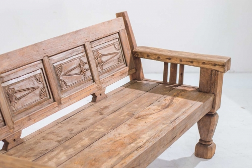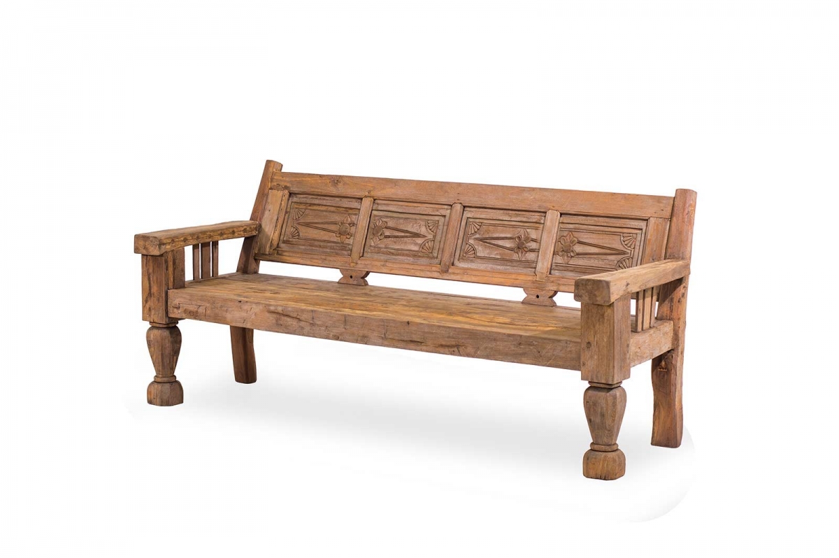 Bank aus massivem Teakholz, von erfahrenen Graveuren von Hand gefertigt und graviert. Die Linie und die Verzierungen weisen auf ihren fernen Ursprung hin: die Insel Java. Mit seinem Konzentrat an handwerklicher Verarbeitung in Kombination mit dem warmen Holzton wird dieses Paneel Ihr Zuhause in jeder Umgebung verschönern.
