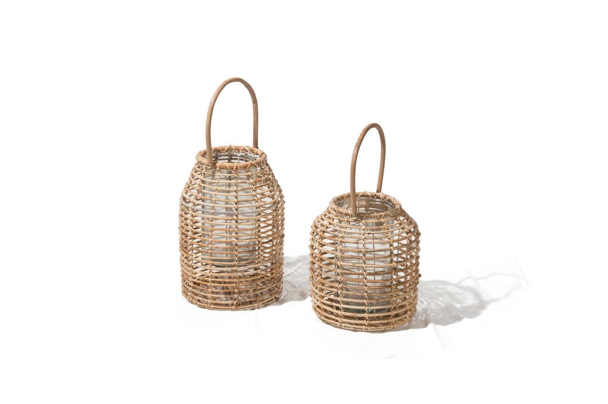 Laterne aus RattanLaterne aus natürlichem Rattan, komplett mit Kerzenhalter aus Glas.