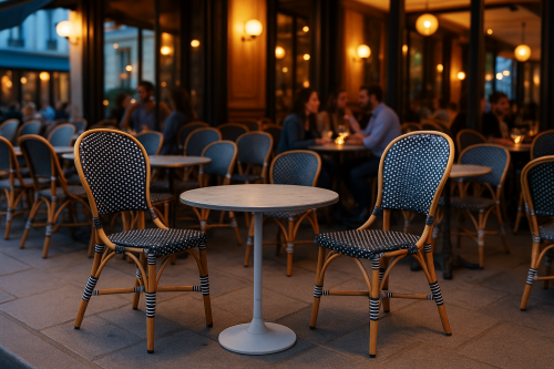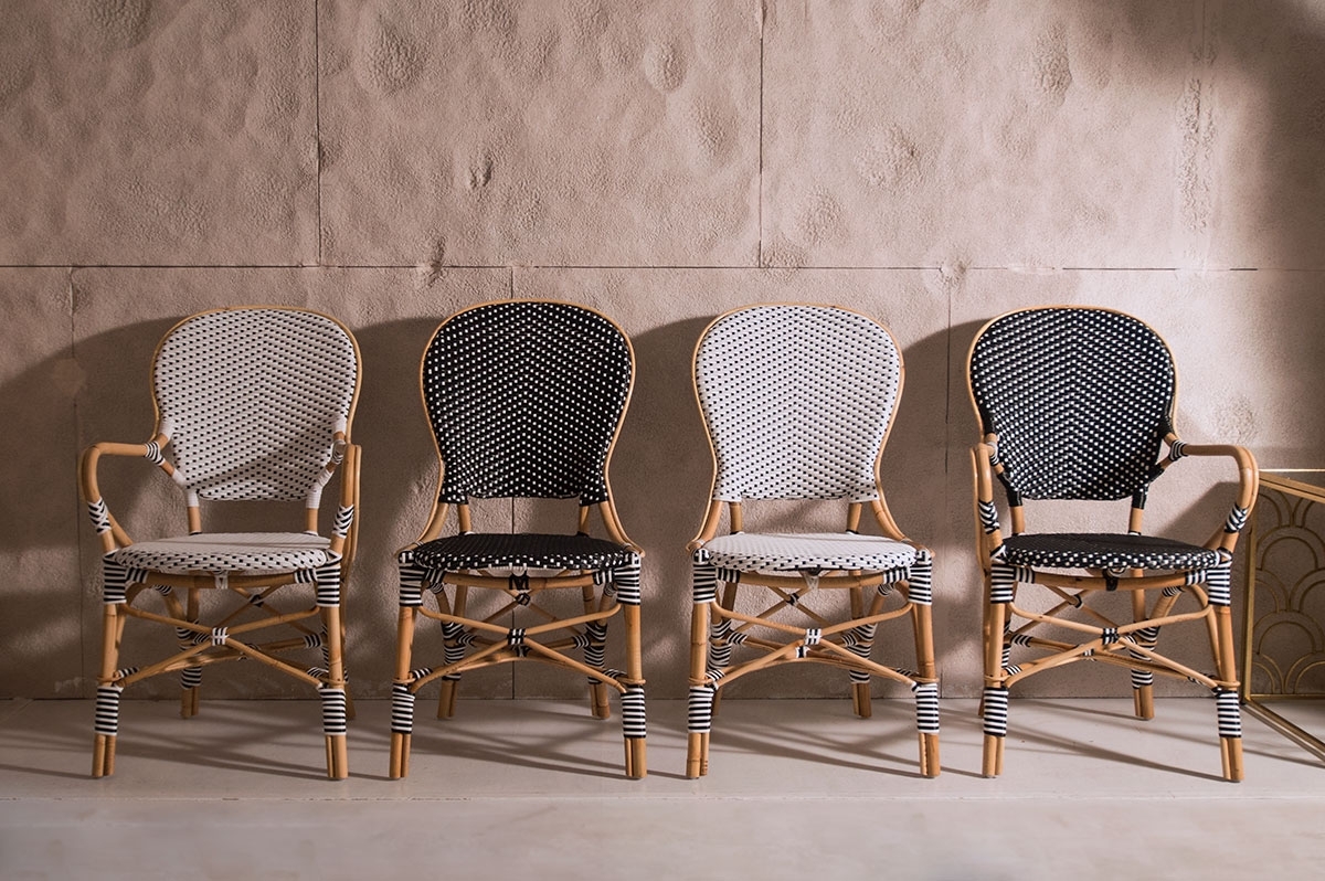 Chairs with a Parisian flair with different textures, colors and patterns.