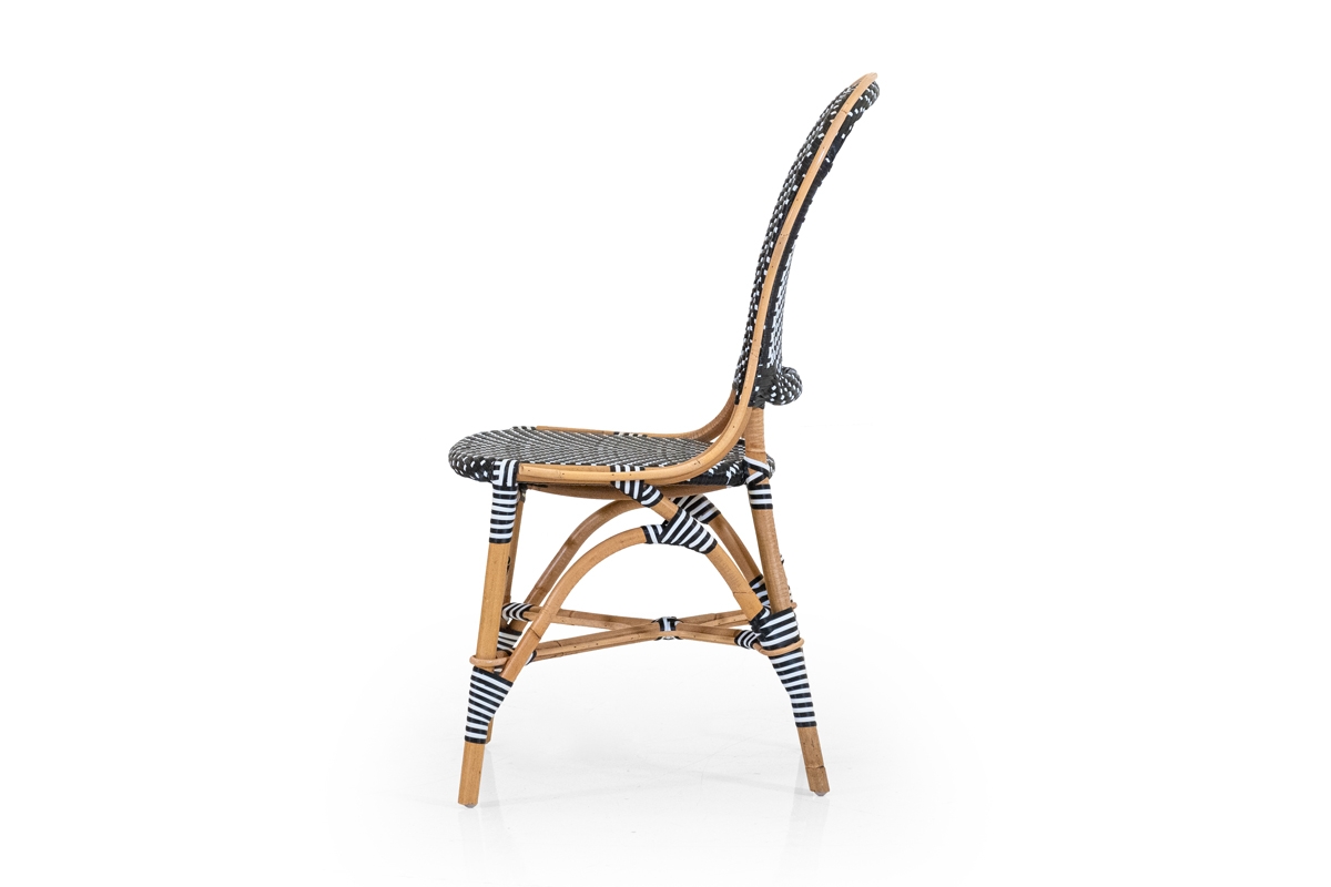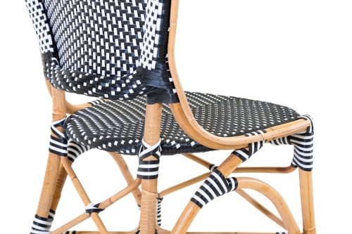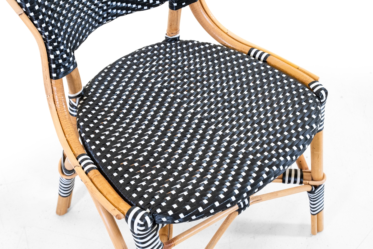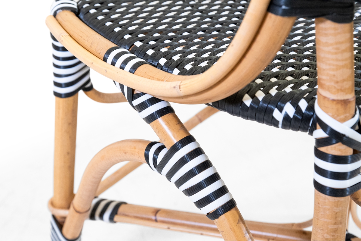 The frame is made out of natural rattan cane, while the weave is made of polyrattan fibres, extremely resistant to UV rays and atmospheric agents.