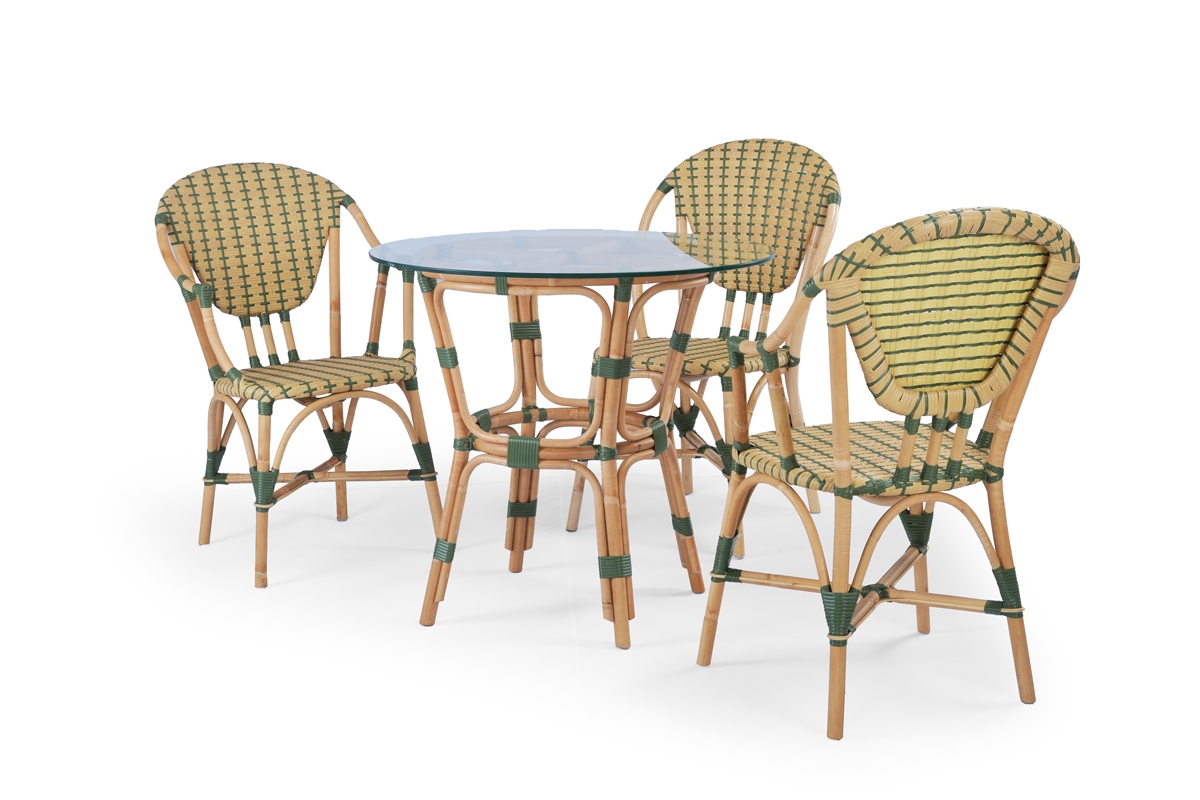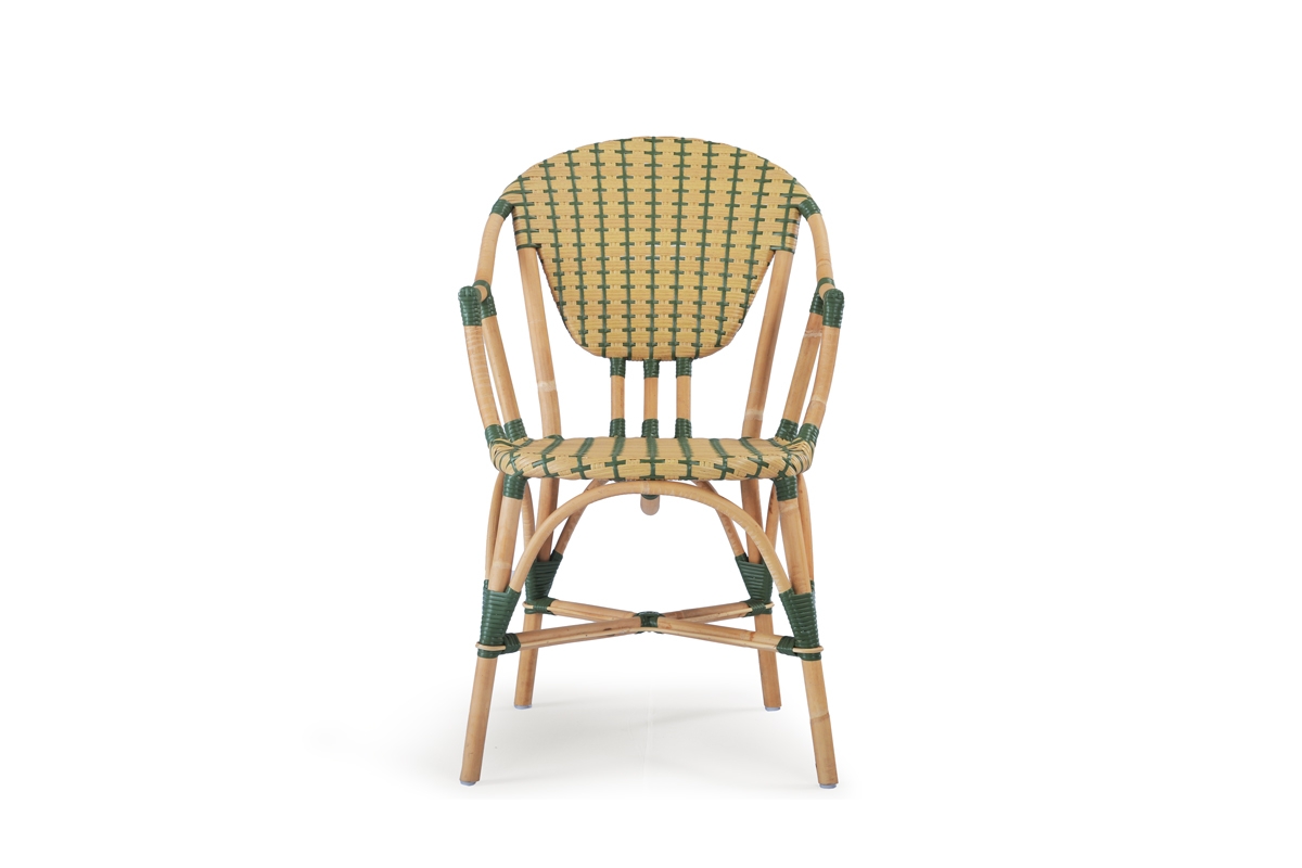 Parigi ist immer eine gute Idee! Der Bistrot-Stuhl aus Rattan ist ein Muss, wenn du ein bisschen französischen Stil in deine Räume bringen möchtest. Die Struktur aus natürlichem Rattan und das Geflecht aus synthetischem Rattan machen ihn wertvoll, zuverlässig und einfach zu pflegen.