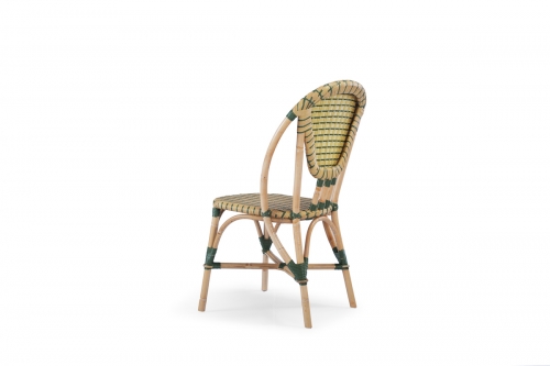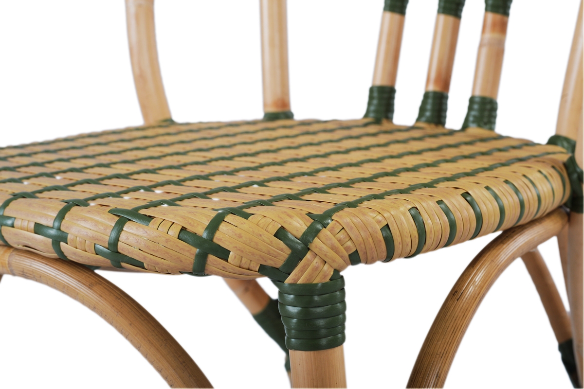 Parigi ist immer eine gute Idee! Der Bistrot-Stuhl aus Rattan ist ein Muss, wenn du ein bisschen französischen Stil in deine Räume bringen möchtest. Die Struktur aus natürlichem Rattan und das Geflecht aus synthetischem Rattan machen ihn wertvoll, zuverlässig und einfach zu pflegen.