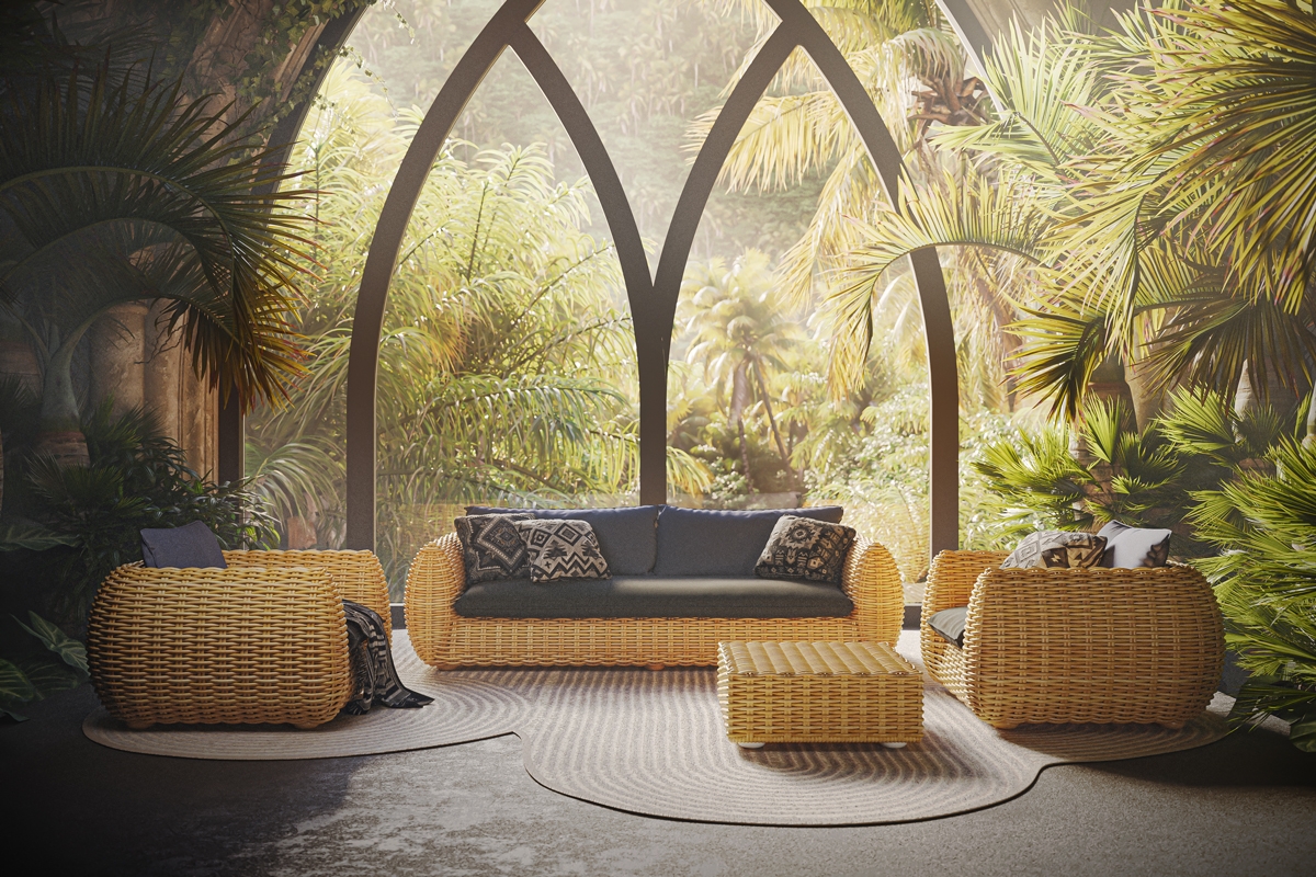 Die Kollektion ist ein Meisterwerk der modernen Handwerkskunst und wurde entwickelt, um einen komfortablen Lounge-Bereich im Freien zu schaffen. Die Möbel mit ihren fließenden, großzügigen und ergonomischen Linien sind so konzipiert, dass sie einladen, sich zu entspannen und angenehme Momente der Geselligkeit zu genießen.
