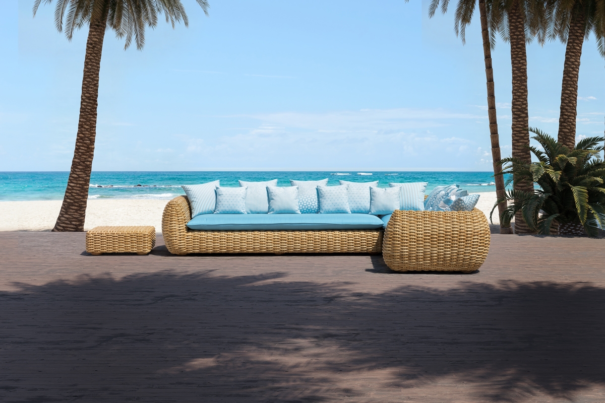 Die Kollektion ist ein Meisterwerk der modernen Handwerkskunst und wurde entwickelt, um einen komfortablen Lounge-Bereich im Freien zu schaffen. Die Möbel mit ihren fließenden, großzügigen und ergonomischen Linien sind so konzipiert, dass sie einladen, sich zu entspannen und angenehme Momente der Geselligkeit zu genießen.