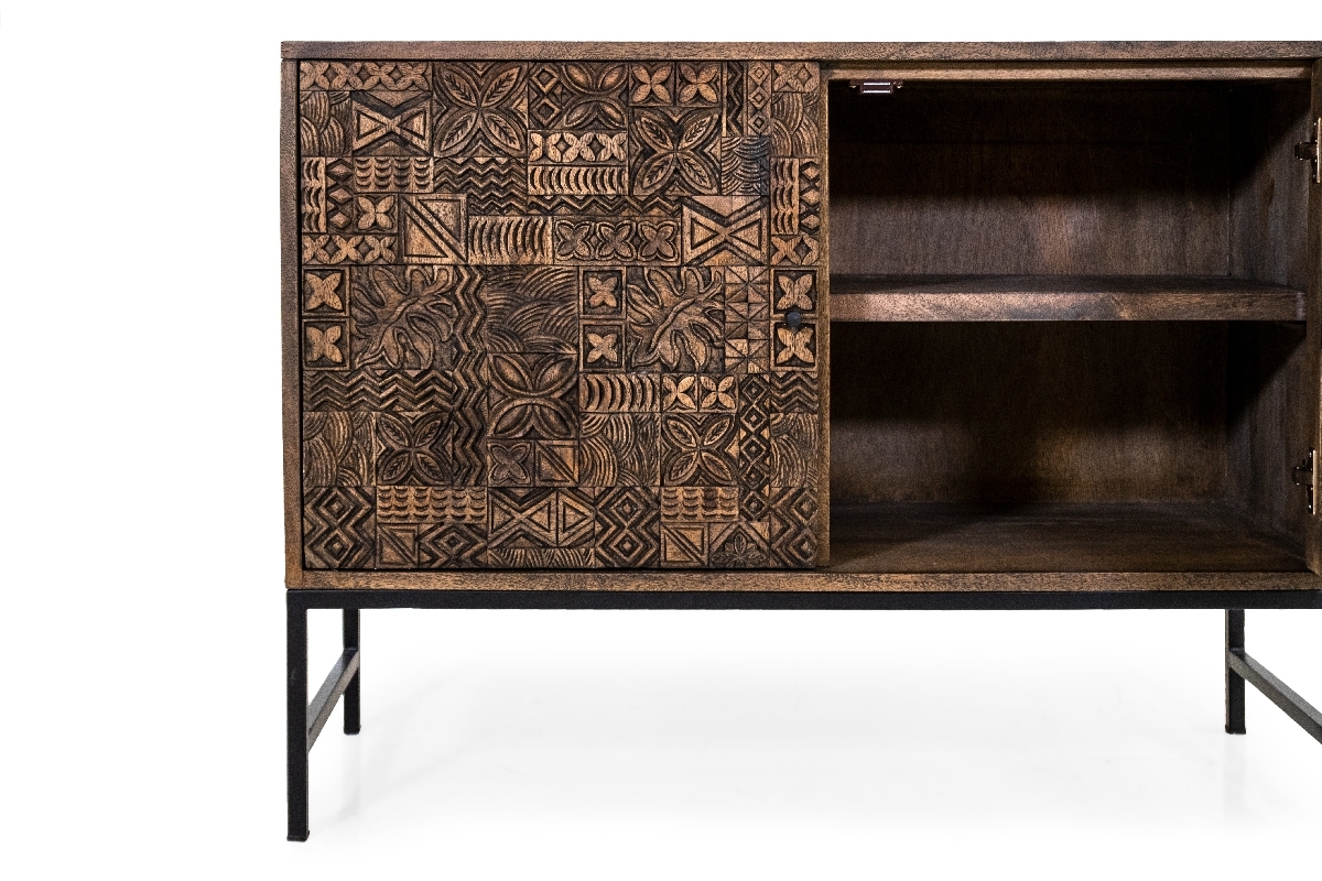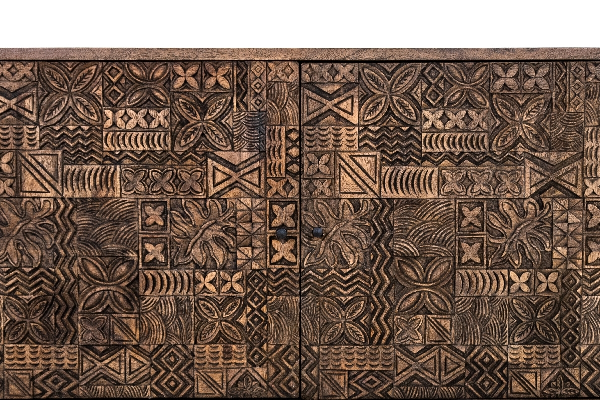 BUFFET SHOP 1015 - cabinet buffet L01005 Buffetschrank mit 2 Türen und 2 Schubladen, mit vollständig handgefertigten geometrischen Holzdekorationen In den Warenkorb