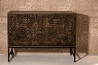 Shop 1046 - kommode L01005 1.296,00 € Kommode mit 3 Fächern, mit handgravierten Details dunkelbraun gebeiztes Mangoholz, Füße aus Aluminium In den Warenkorb