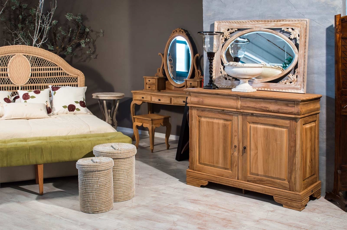 BUFFET SHOP 999 - Geschirrschrank L0999 Handgeschnitze Geschirrschrank aus Teakholz mit 3 Schubladen und 2 Türen.Width 180 - Depth 50 - Height 84Farbe: natural In den Warenkorb