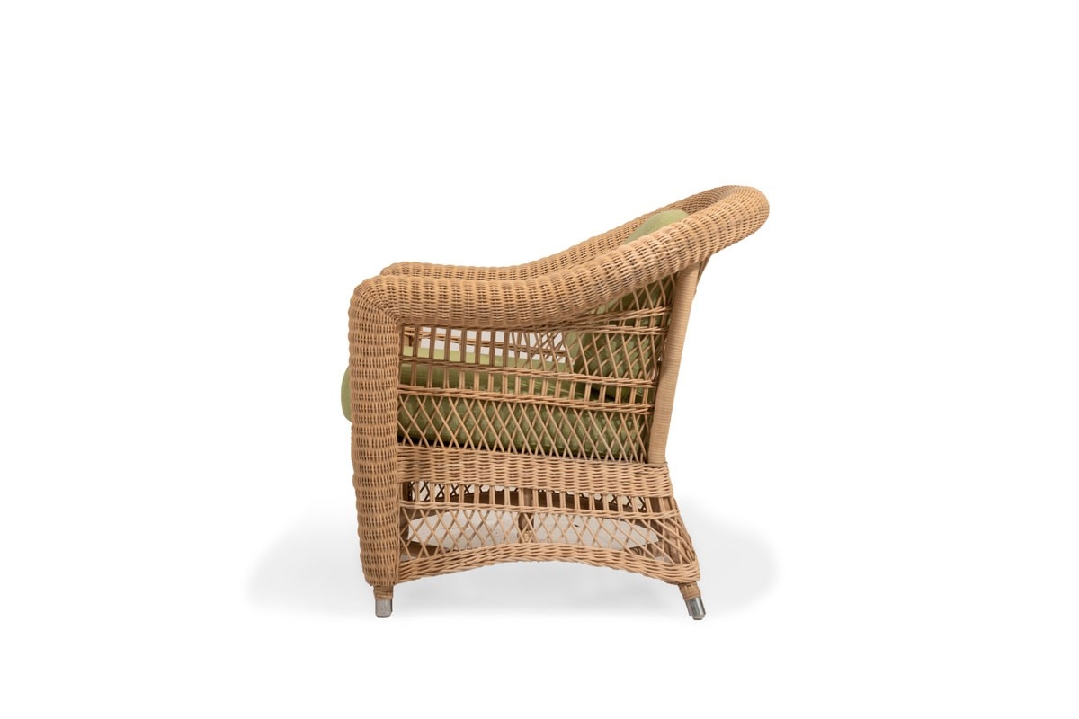 The elaborate rattan frame of the Classica armchair, woven with wicker, will give elegance to your living room, without give up the comfort thanks to the soft seat cushion.