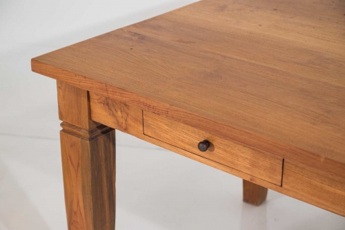 ESSTISCHE SHOP 487 / 10 - ESSTISCH L0487_10 Massiver Teakholz-Esstisch, von Hand gehobelt.Fuß: 14x14 cm. Oberfläche: white wash In den Warenkorb