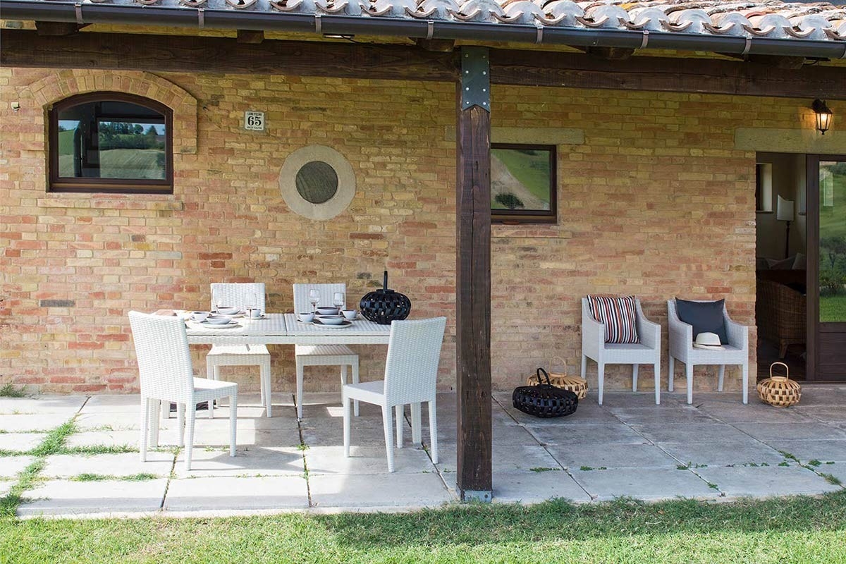 Schlicht und behaglich. Eine Kollektion, die dazu einlädt, die freie Zeit draußen zu genießen, an einem Tisch zu sitzen, der weiß, wie man Platz schafft... denn je mehr wir sind, desto besser fühlen wir uns!