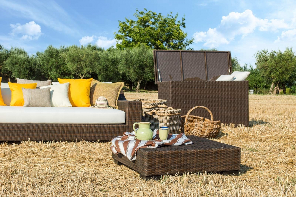 Die große, "magische" Truhe, von der man nie weiß,was in ihr steckt,bis man hinein schaut! Geschaffen, um die Kissen Ihrer Outdoor-Möbel zweckmäßig und ordentlich zu verstauen.