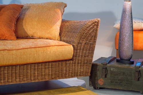 Wood frame, woven with natural wicker by 3mm. Transparent finish.