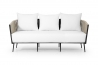 Die Kollektion Isotta zeichnet sich durch ihr dichtes und präzises Flechtwerk aus, das von erfahrenen Handwerksmeistern in Handarbeit gefertigt wird. Dieses umhüllt ein robustes, weiß lackiertes Aluminiumgestell, das an Armlehne und Rückenlehne sichtbar ist. Der Kontrast zwischen der Farbintensität der Kissen und der Eleganz der Materialien macht jedes Stück einzigartig und wiedererkennbar.