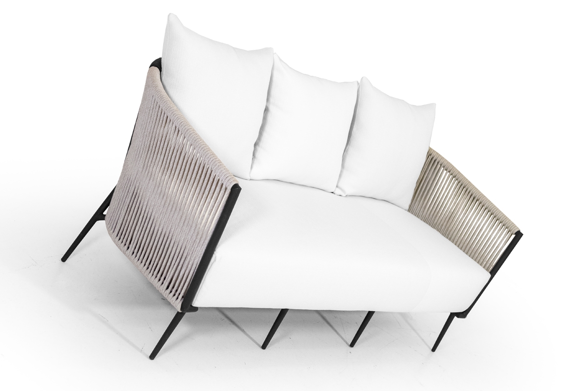 Die aus Polypropylen gefertigte Kordel ist wetterbeständig und sorgt auch im Außenbereich für Langlebigkeit und Schönheit. Das Aluminiumgestell verleiht jedem Element Stabilität bei gleichzeitig geringem Gewicht und schützt vor Korrosion.
