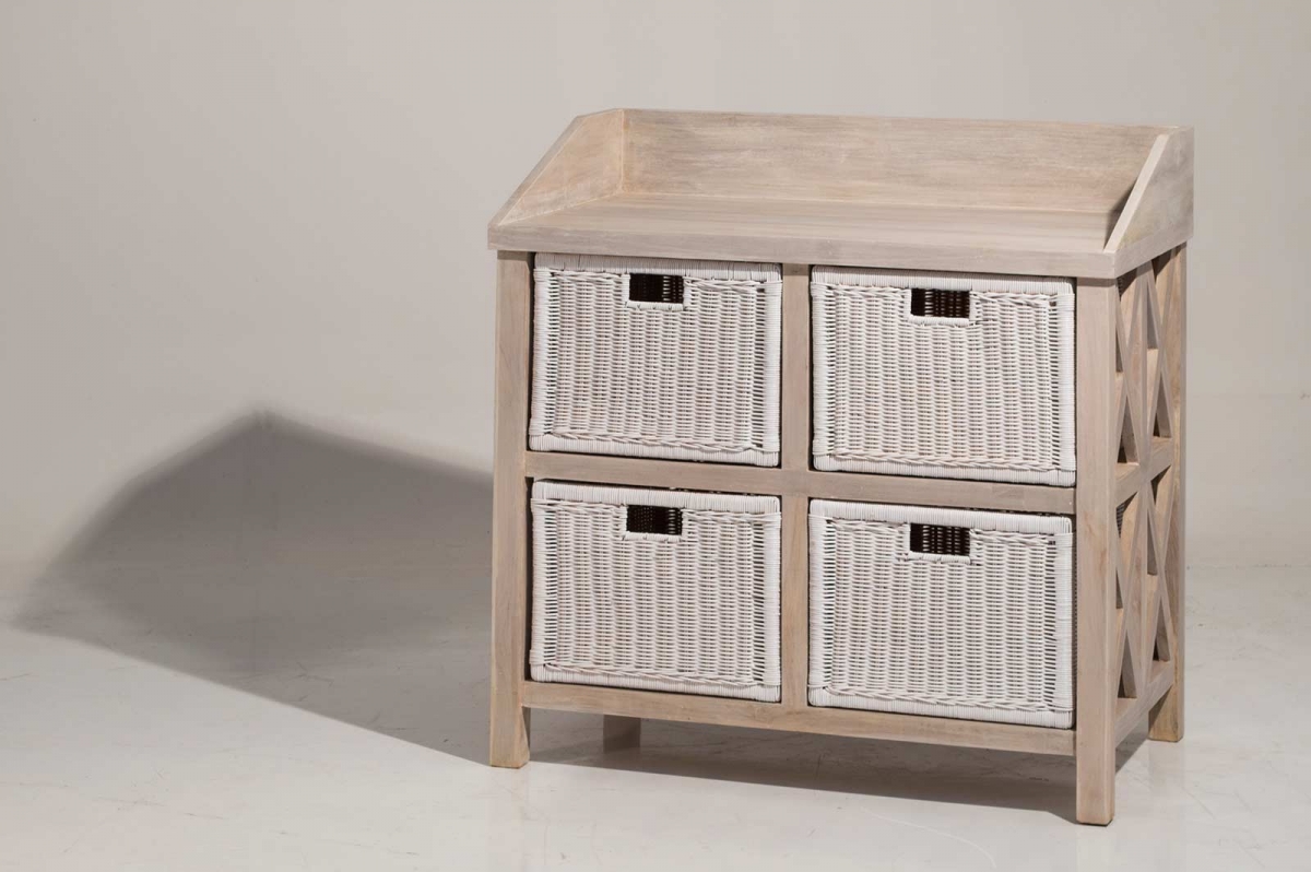 KOMMODEN SHOP 996 - Kommode L0996 Kommode aus Teakholz mit 4 Schubladen.Farbe: weiß abgewischt In den Warenkorb