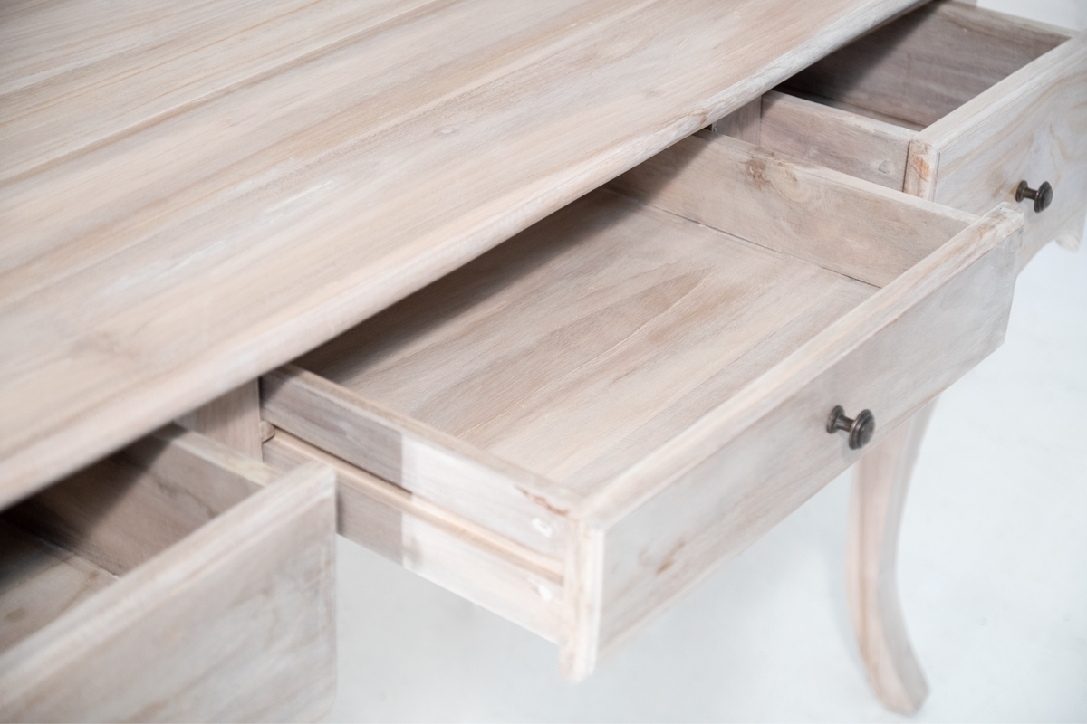 Möbel SHOP 499 - Konsole L0499 Die Konsole aus massivem Teakholz mit ethnisch handgeschnitzter Linie ist vielseitig einsetzbar: Sie eignet sich sowohl als Eingangsschrank als auch als Taschenentleerer. Farbe: gebeiztes Weiß In den Warenkorb