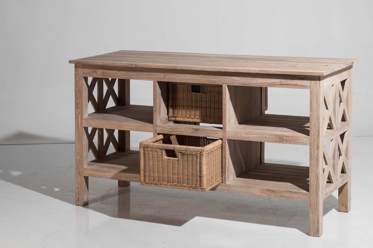 Möbel SHOP 769 - Bücherregal L0679 Handgefertigtes Bücherregal aus Teakholz mit 4 Schubladen und zwei Türen Farbe: gebeiztes Weiß In den Warenkorb