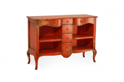 KONSOLE®ALE SHOP 275 - Schreibtisch L0275 Handgefertigte Schreibtisch aus Holz mit 9 Schubladen.Farbe: rot nuancierten schwarz In den Warenkorb