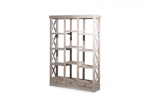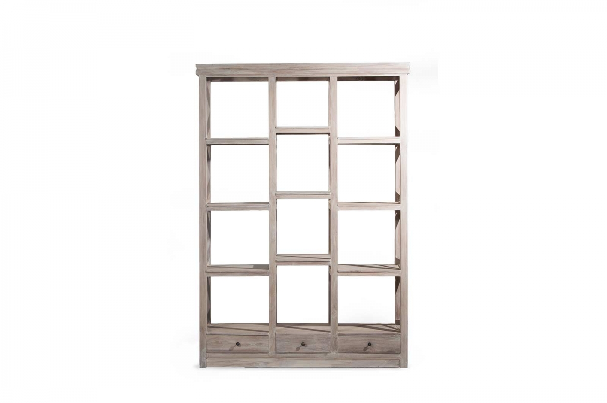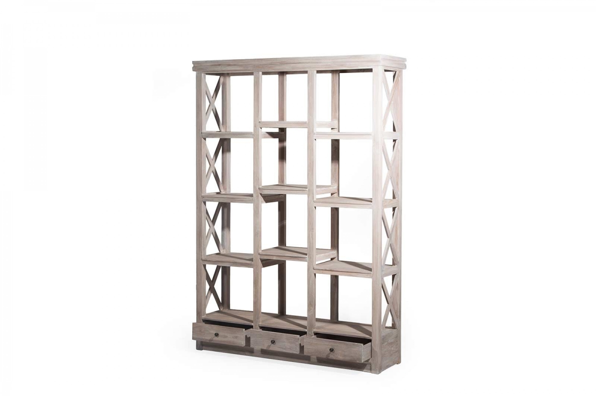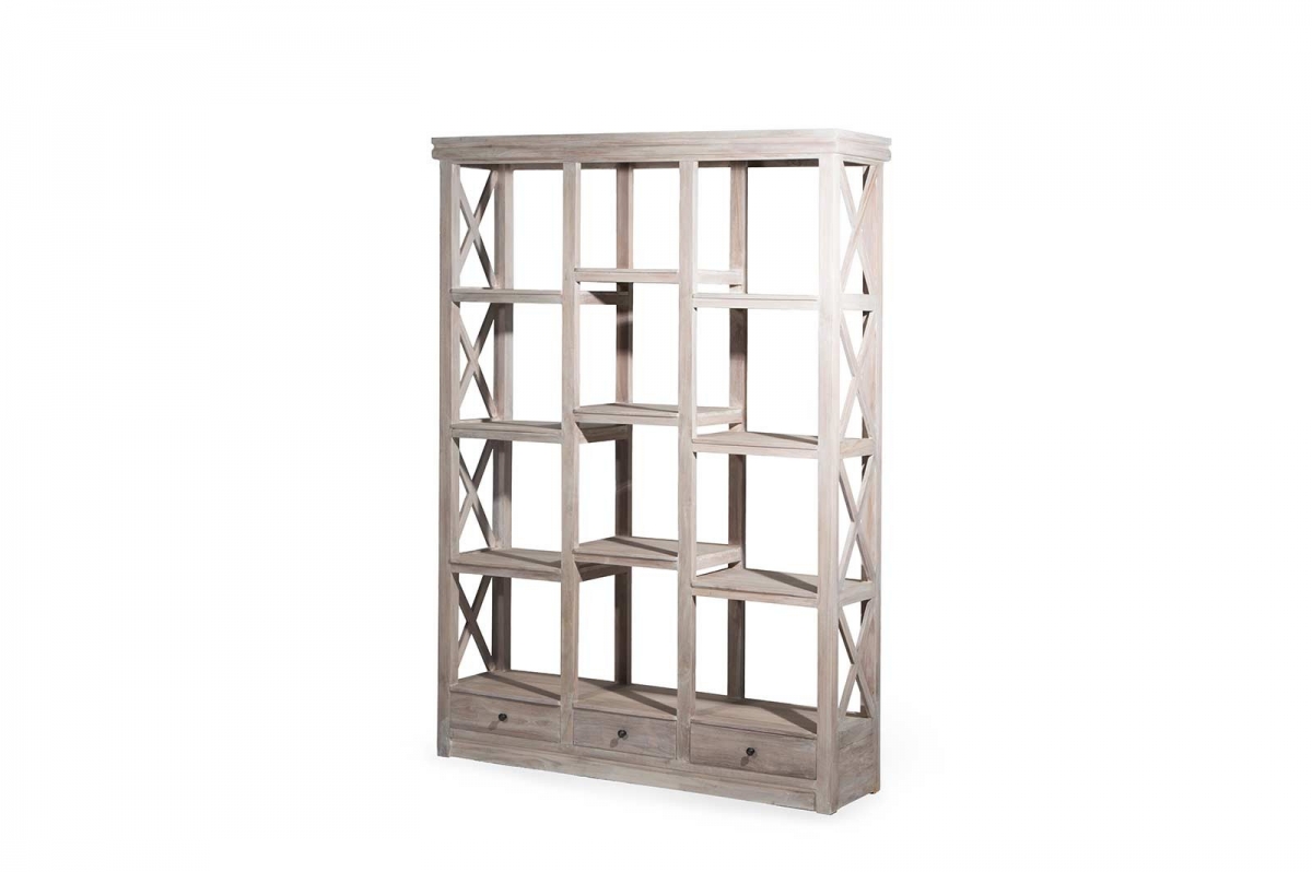 Möbel SHOP 769 - Bücherregal L0679 Handgefertigtes Bücherregal aus Teakholz mit 4 Schubladen und zwei Türen Farbe: gebeiztes Weiß In den Warenkorb