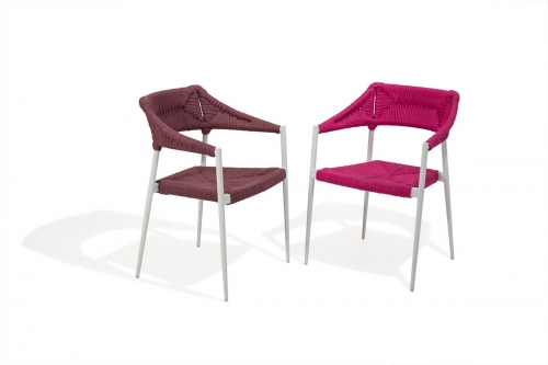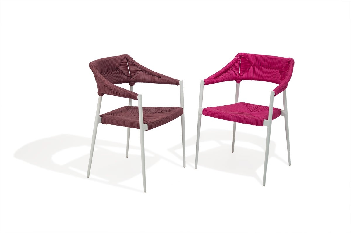 The LOONA chairs have a powder-coated aluminum framing and a handmade polypropylene rope.