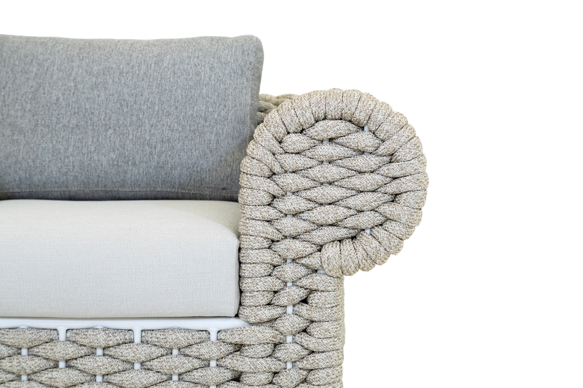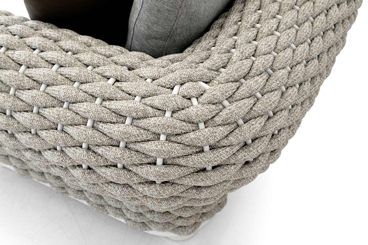 Die Milo-Sessel ist von einer ikonischen Kollektion aus unserer Geschichte inspiriert, die neu gestaltet und mit modernen Linien und einem dicken 30 mm dicken Strang, unserer neuesten Ergänzung des Seilwebrepertoires, aktualisiert wurde.