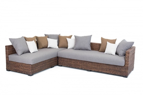 Rattan armchairs and sofas made by wooden frame, woven with natural crocus 6mm. Transparent finish.