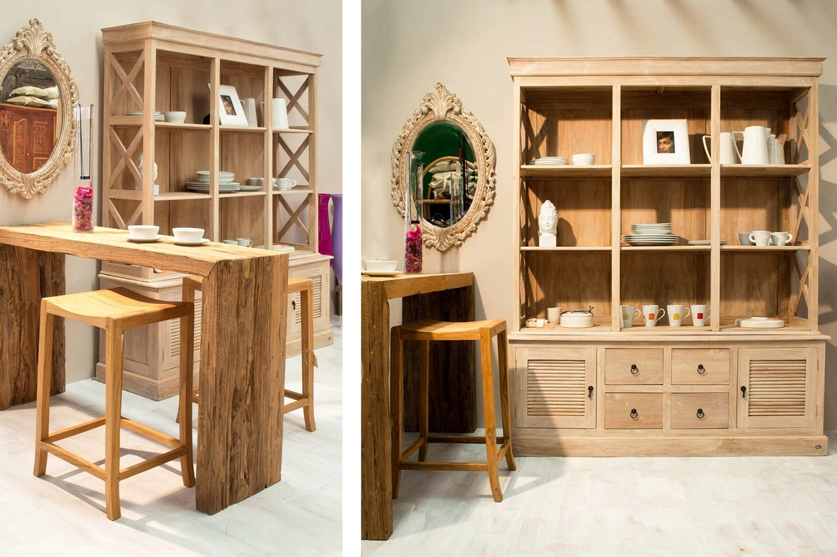 Möbel SHOP 611 - vetrine L0830 Mobiles Kräuterkombi-Sideboard in Teak, mit Gravuren und Handarbeit Finish: gebeiztes Weiß In den Warenkorb