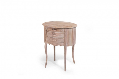 NACHTTISCHEN SHOP 869 - NACHTTISCH L0869 Teakholz Nachttisch mit 3 Schublade. Finish: weiß abgewischt In den Warenkorb