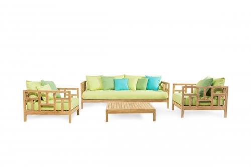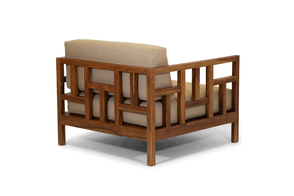 - Teakholz massiv, von Hand geglättet.