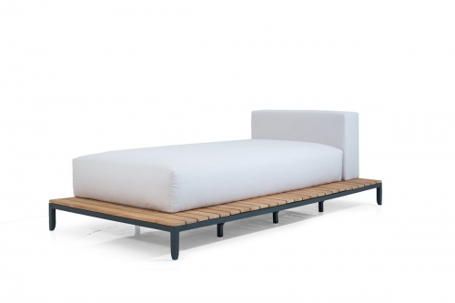 Die Formel ist einfach: Kissen und Gestell aus Teakholz im "rustikalen " Stil.