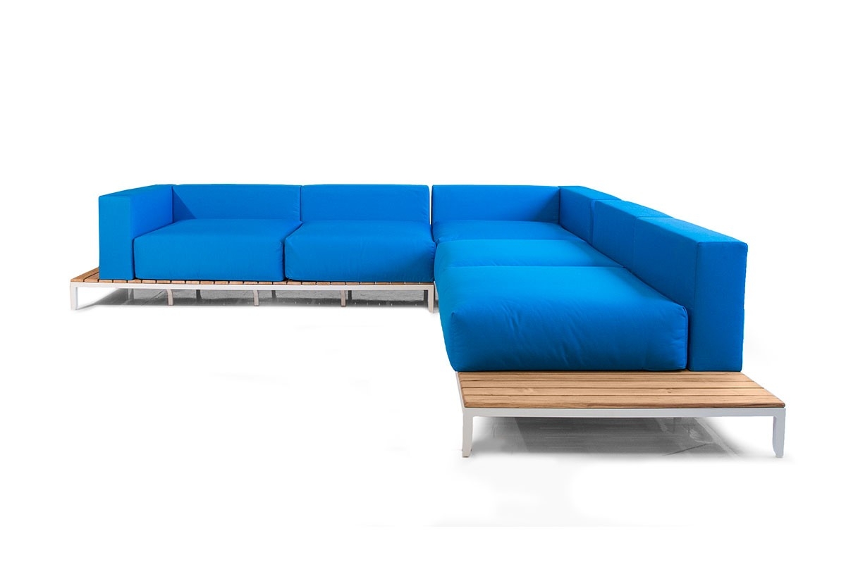Die Formel ist einfach: Kissen und Gestell aus Teakholz im "rustikalen " Stil.
