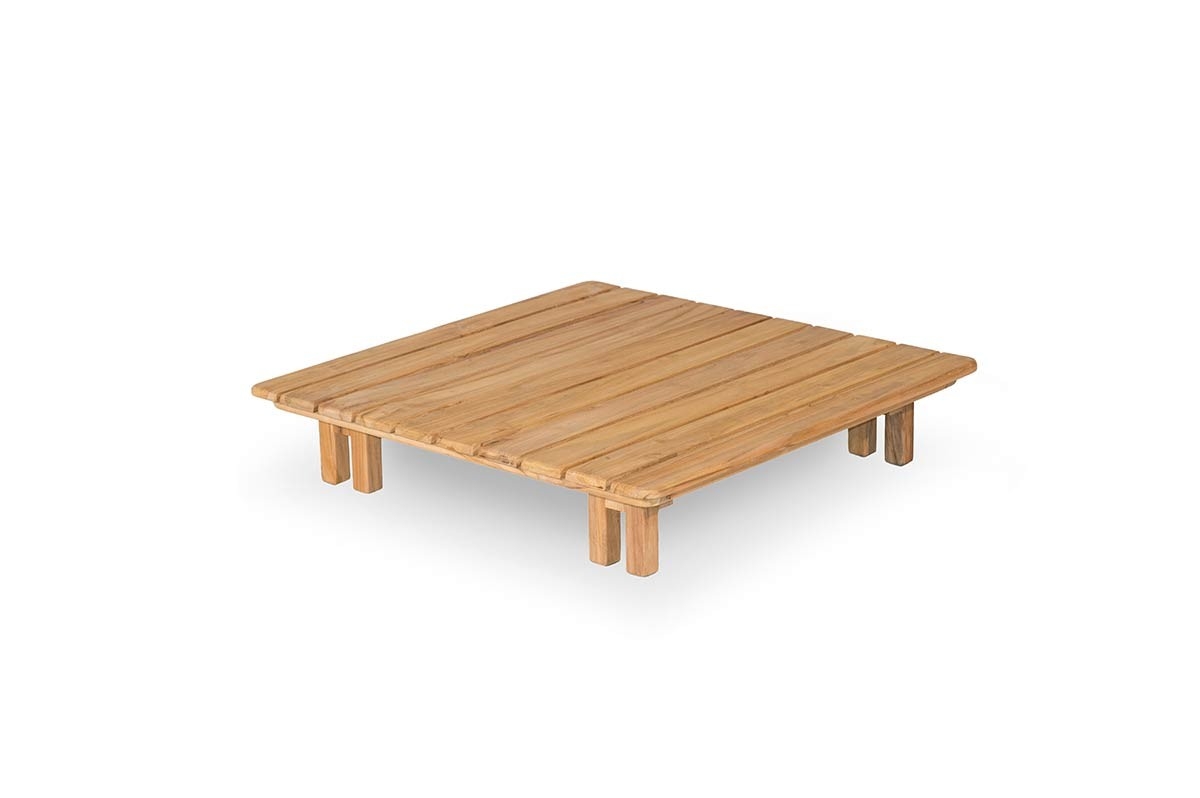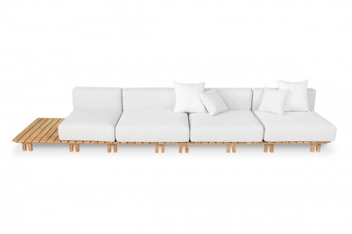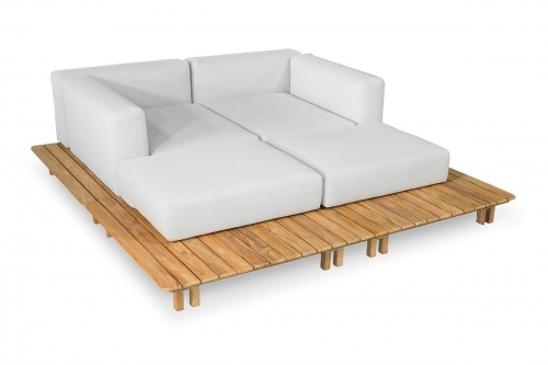 Die Formel ist einfach: Kissen und Gestell aus Teakholz im "rustikalen " Stil.