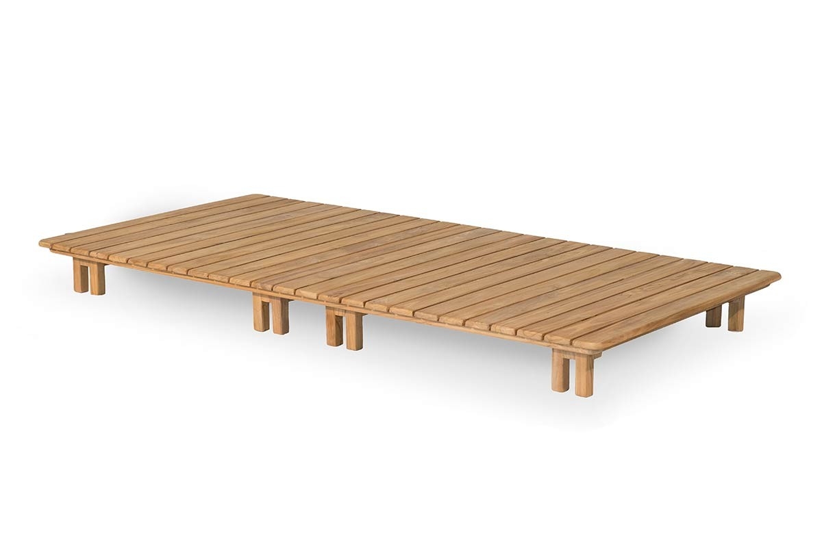 Die Formel ist einfach: Kissen und Gestell aus Teakholz im "rustikalen " Stil.
