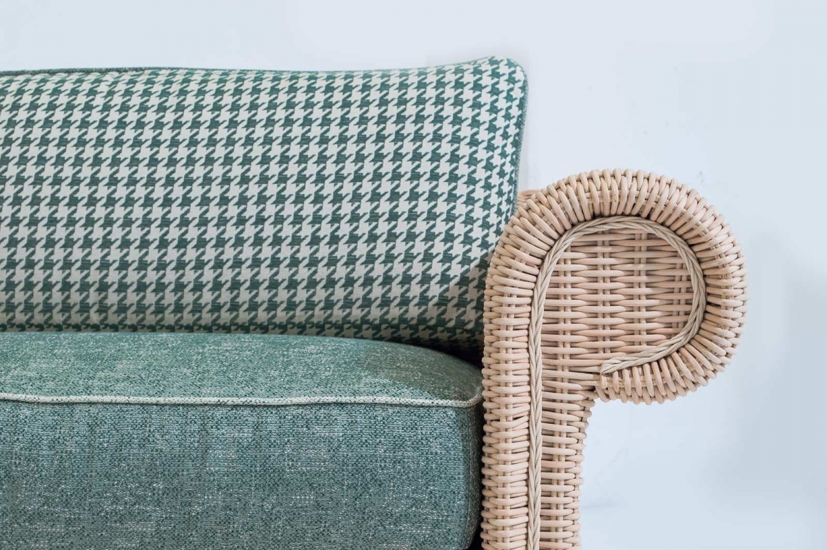 Die Polsterung bezogen mit einem leicht abnehmbaren und waschbaren Basisstoff der Kategorie Ecru oder einer anderen Kategorie mit Farben und Mustern, die unter "Indoor-Stoffe" eingesehen werden können.