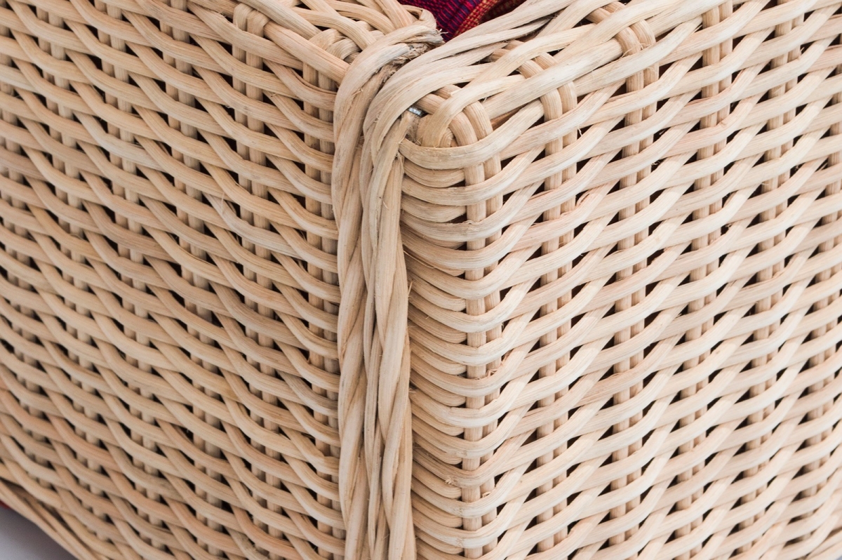 Alle Stücke der Professor Brown Kollektion verfügen über einen Holzrahmen, der von erfahrenen Handwerksmeistern vollständig von Hand mit natürlichem Rattan geflochten wird.