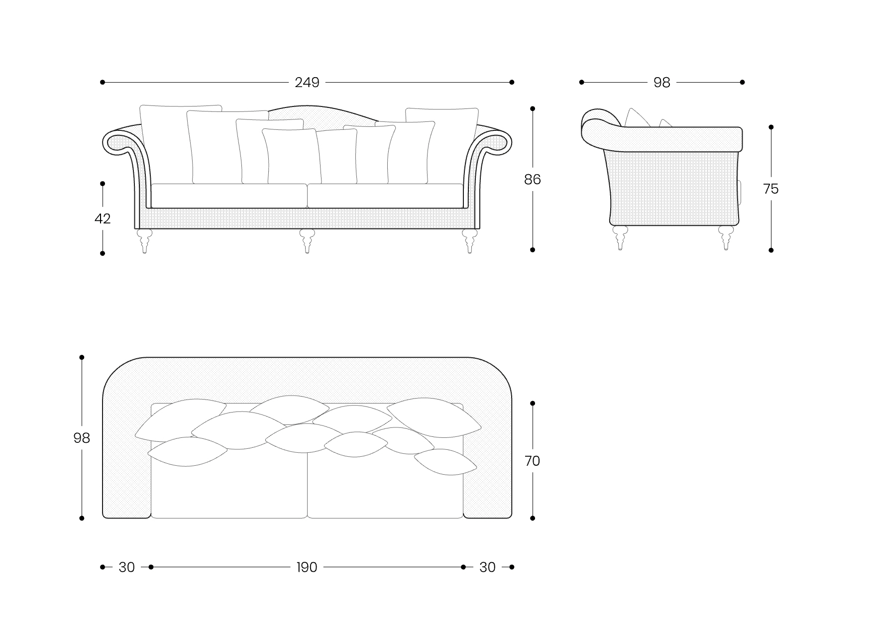 Die Polsterung bezogen mit einem leicht abnehmbaren und waschbaren Basisstoff der Kategorie Ecru oder einer anderen Kategorie mit Farben und Mustern, die unter "Indoor-Stoffe" eingesehen werden können. Fuß nach Wahl bei der Bestätigung.