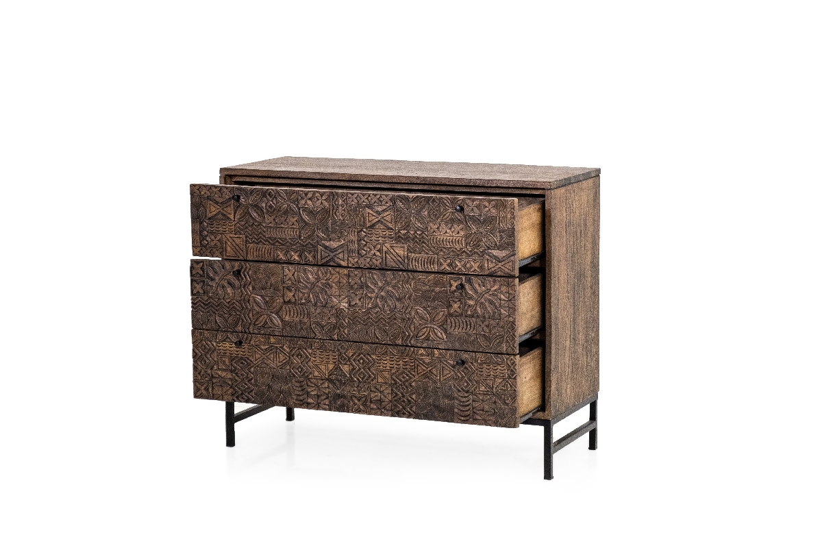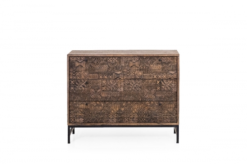 BUFFET SHOP 1045 - 2-türiger Schrank L01005 1.521,00 € 2-türiger Schrank, mit handgravierten Details dunkelbraun gebeiztes Mangoholz, Füße aus Aluminium In den Warenkorb