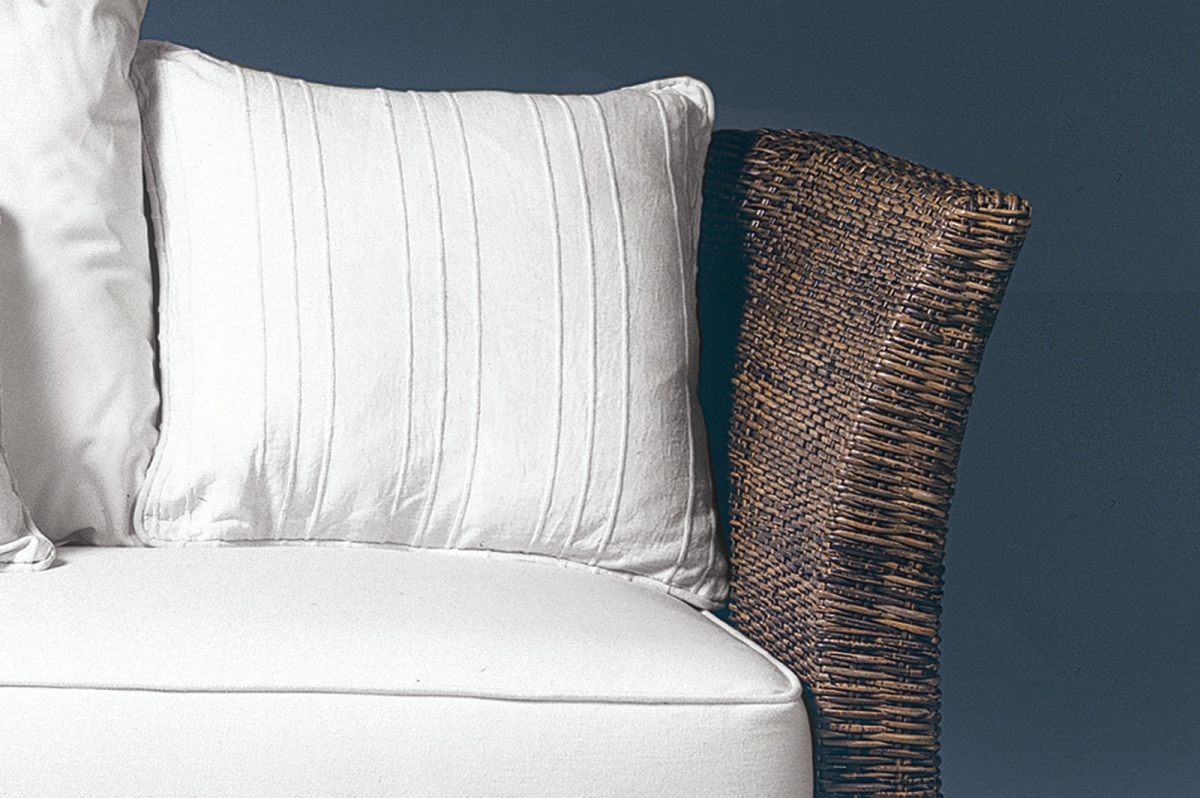 Cushions in polyurethane foam, removable and covered with an ecru base-category fabric or with a higher category whose colors and patterns are selectable under "fabrics".