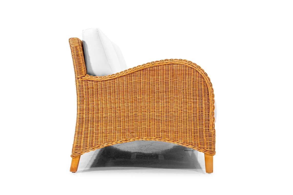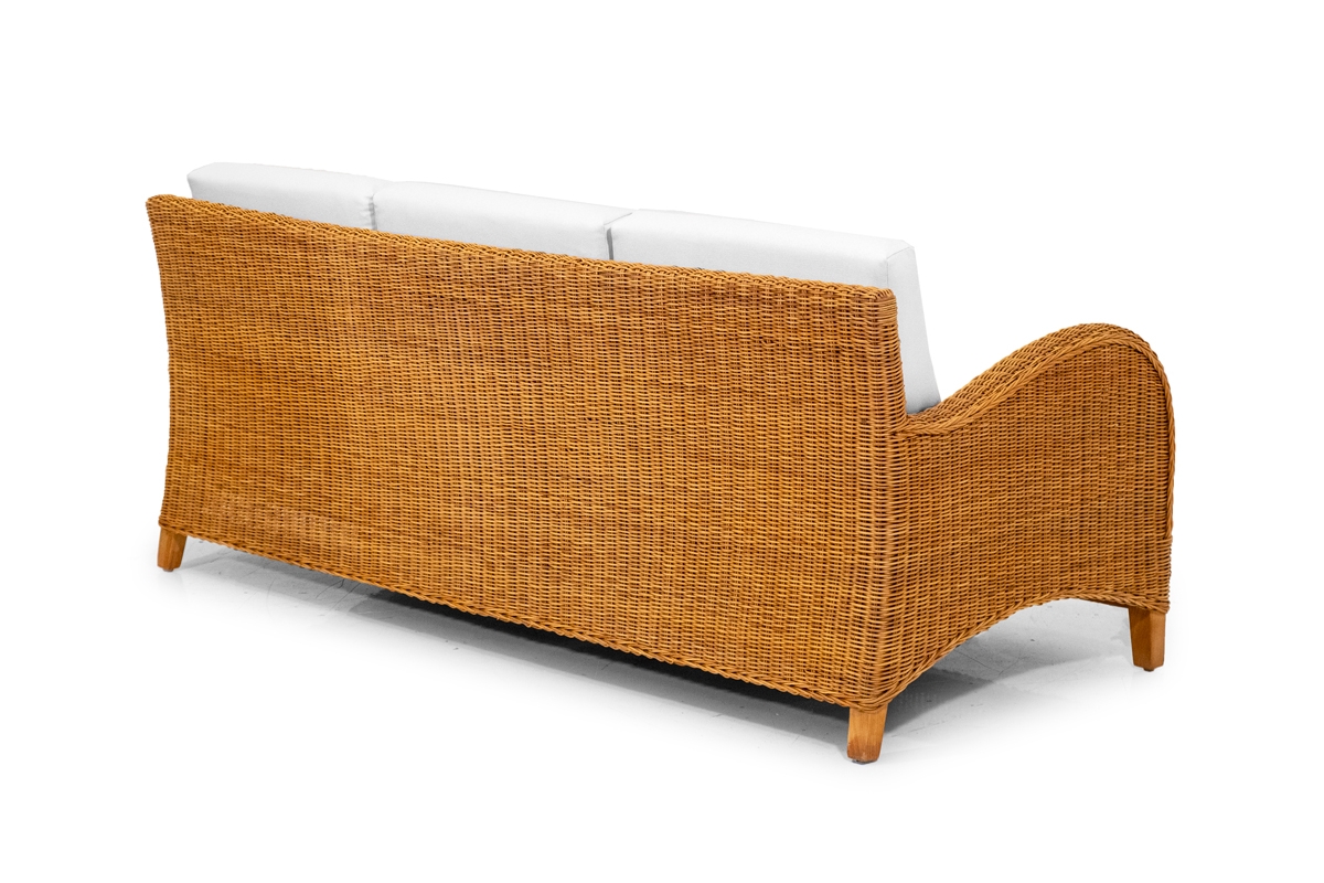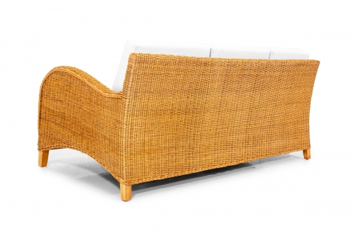 The Onda living set in rattan has a wood frame, woven with natural pulut by 3mm. Transparent finish.