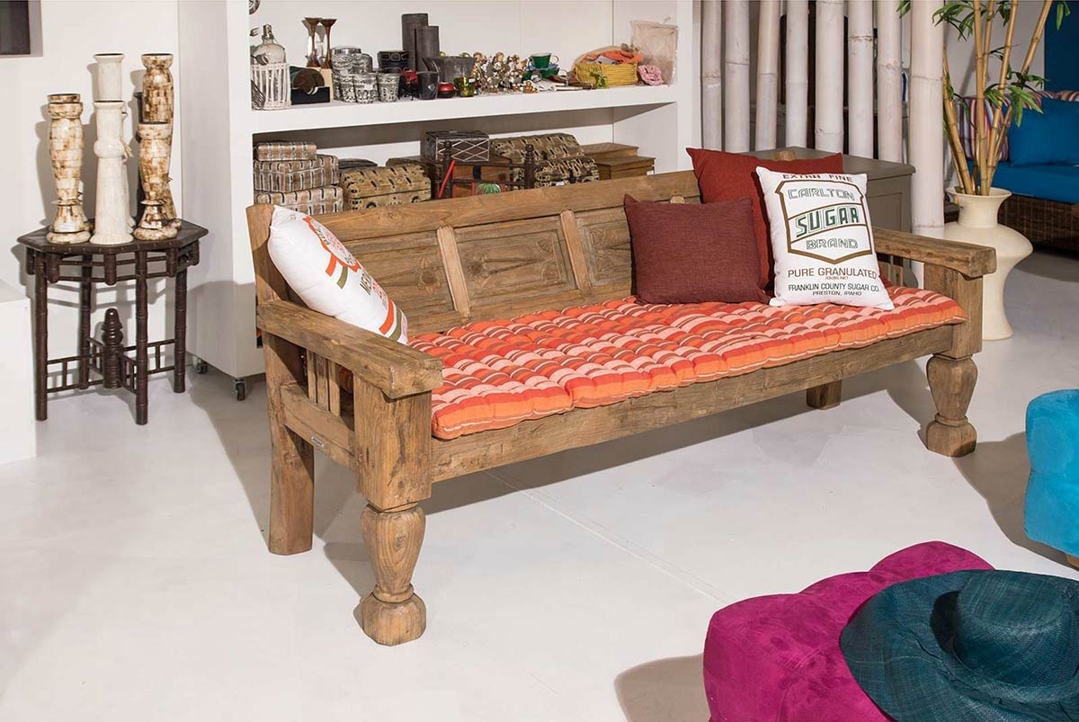 Bank aus massivem Teakholz, von erfahrenen Graveuren von Hand gefertigt und graviert. Ideal, um Ihr Zuhause in jeder Umgebung zu verschönern, eine Terrasse, einen Wintergarten oder eine Veranda.