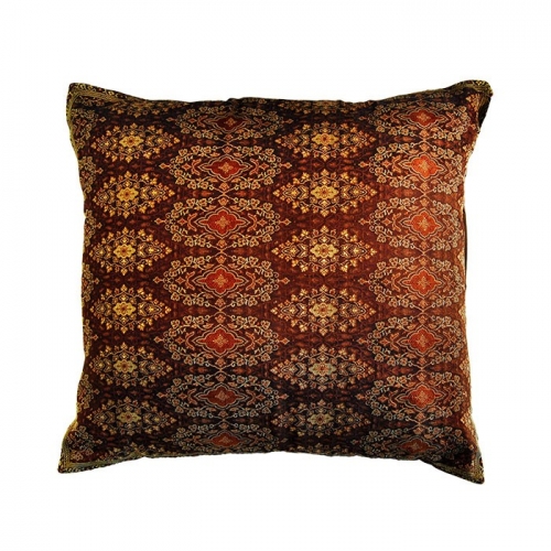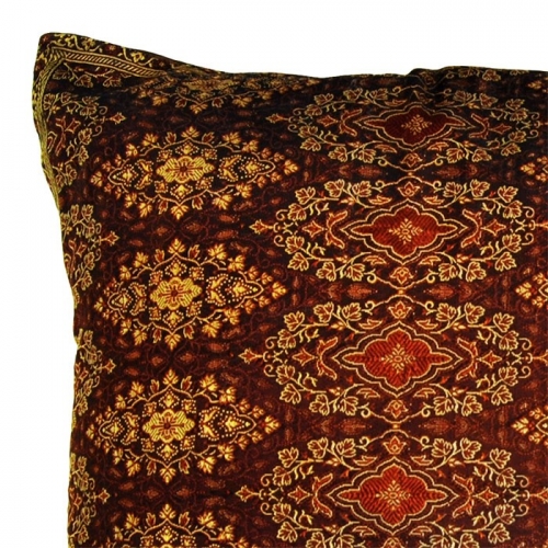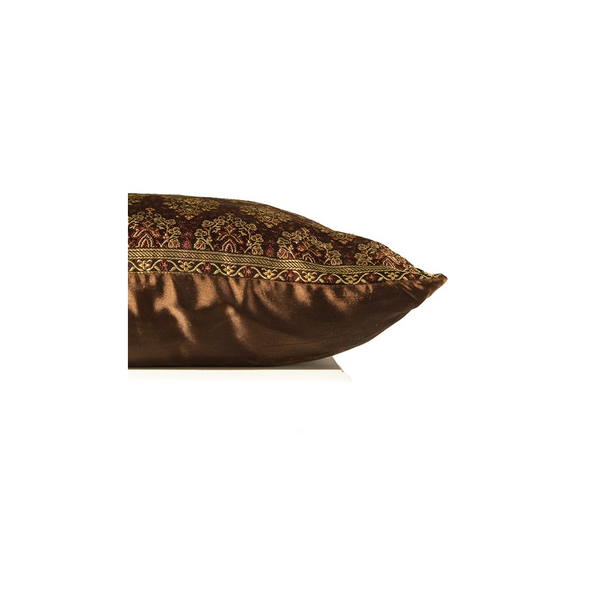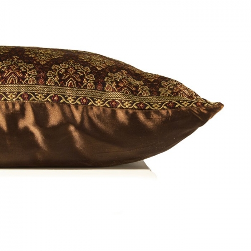 Brown damasked cushion cover made with silk enriched by precious details, Maraja pattern.