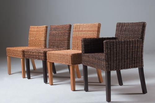 The Thema dining chairs in rattan has a wood frame, woven with natural pulut by 3mm. Transparent finish.