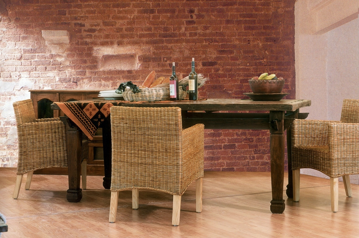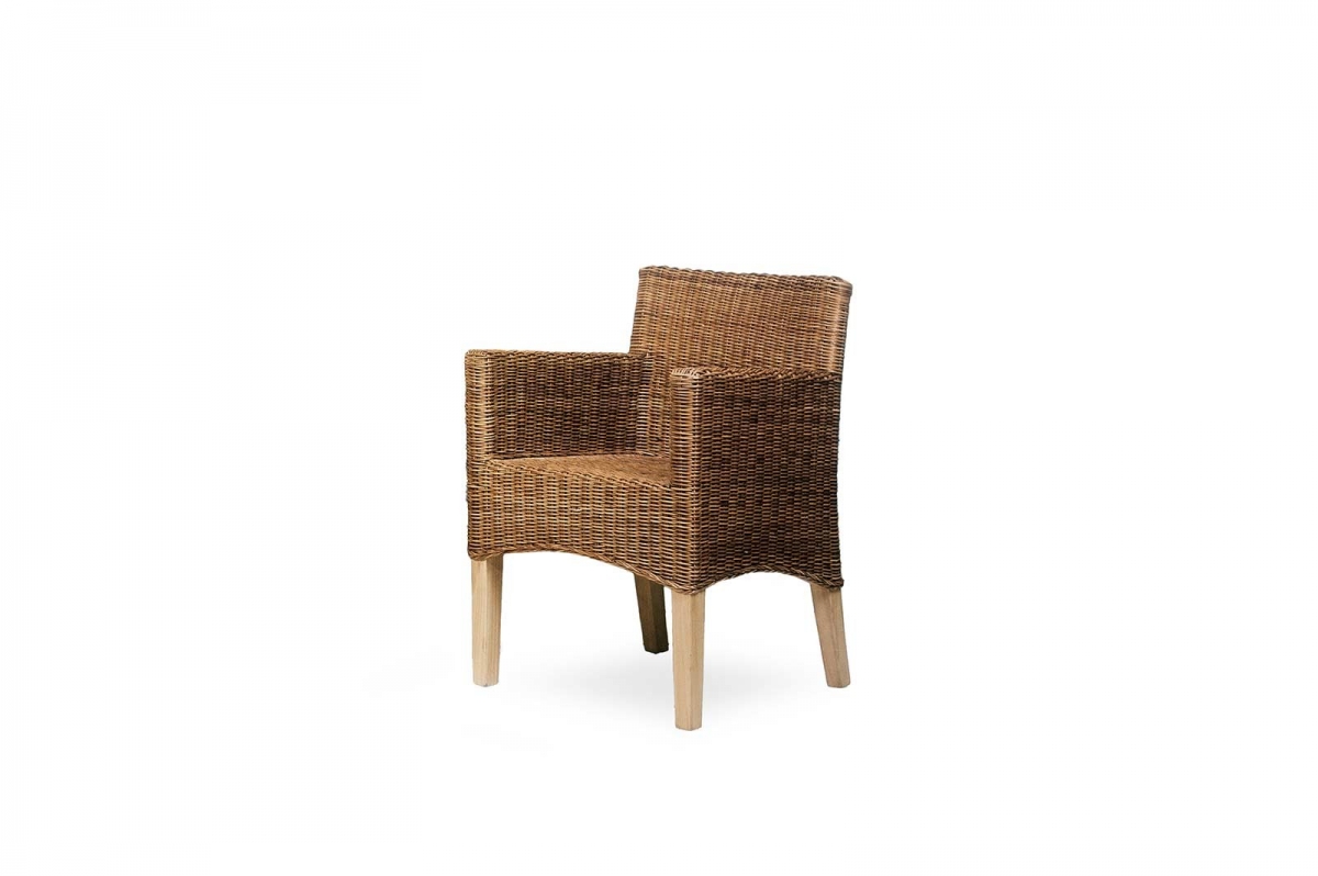 The Tiffany dining armchair has a wood frame, woven with natural rattan. Transparent finish.