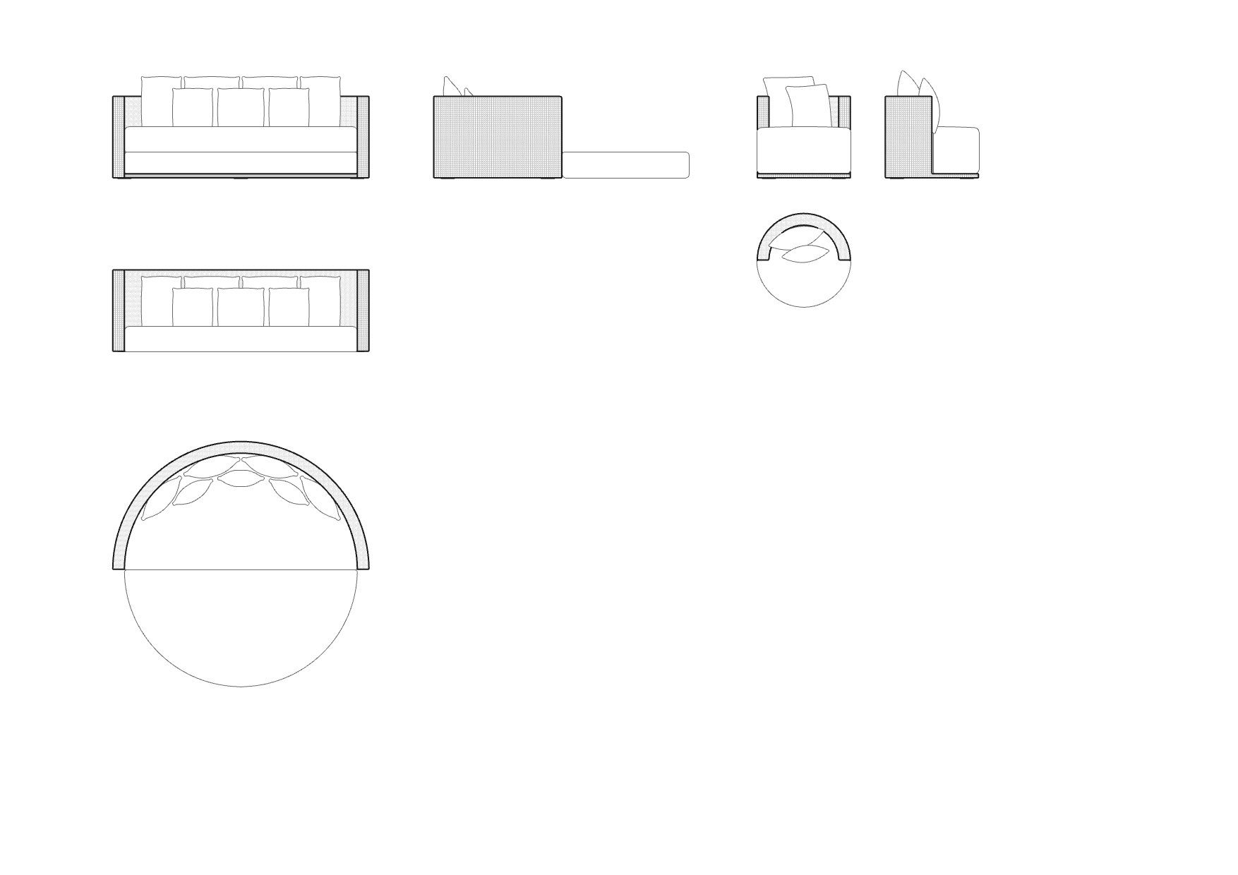 The padding is in polyurethane foam, covered with an easily removable and washable basic category Ecru fabric, or another category with colors and patterns that can be viewed under "Indoor Fabrics".