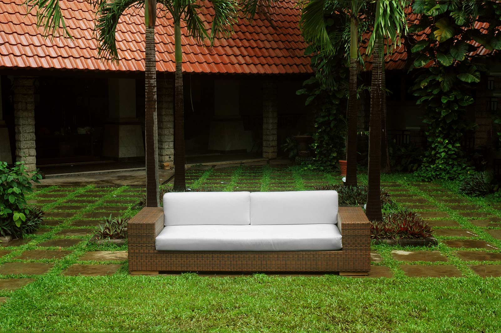 The padding is in polyurethane foam, covered with a water-repellent fabric, resistant to lightening due to the sun and water. All cushions are easily removable and washable, covered with a basic category Ecru fabric, or another category with colors and patterns that can be viewed under "Outdoor Fabrics".