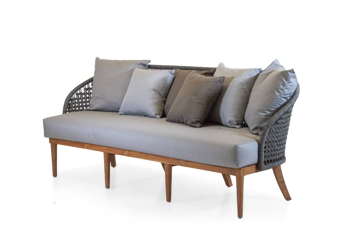 Còco Còco - 3 seater sofa VCOCO.030 The colors of the sea, the sun and nature collected in a single collection.The CÒCO line has a powder-coated aluminum framing and a handmade polypropylene rope weave. Upholstery is in polyurethane foam. All our cushions come with water-repellent, removable and washable covers. View