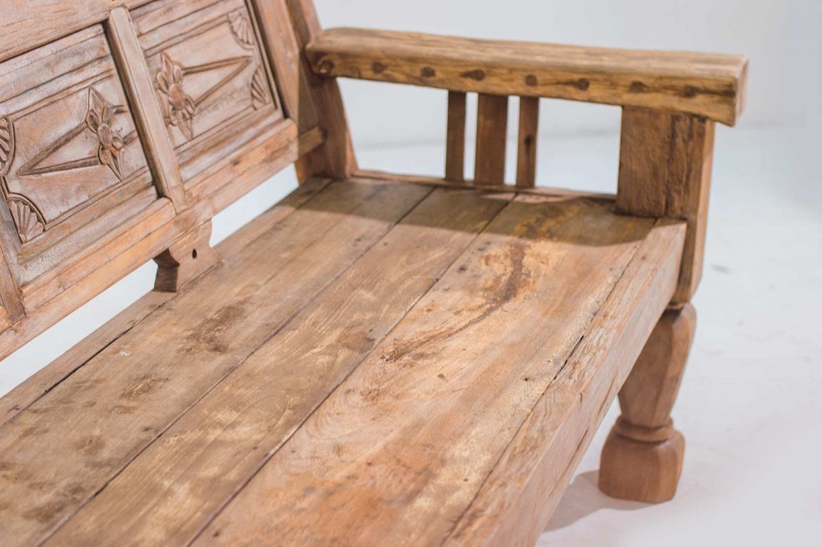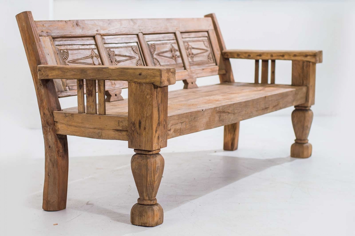 Bench in solid teak made and engraved by hand by skilled engravers. The line and the decorations denote its distant origin: the island of Java. With its concentrate of skilled workmanship combined with the warm tone of wood, this panel will embellish your home in any environment.